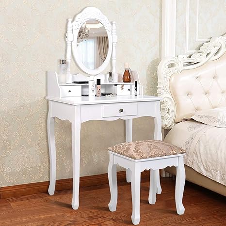 Smooth materials, such as glass, are a good choice if you prefer quick and easy cleaning. Above all things, it is not only a vanity dressing table but also serves as a writing table when the top mirror is flip closed. The white dressers and metal consoles lend a contemporary look while pine designs add elegance. 4.6 out of 5 stars. This dressing table set with exquisite craftsmanship and an elegant white appearance is a good decoration for your home.